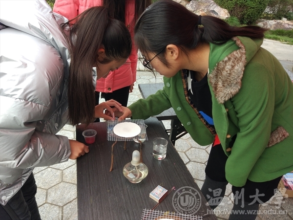 此次游园会,共设置了”香薰蜡烛”,“水中花园”,“结构式拼拼拼”,“生活大爆炸”,“炽热的雪女”,“化学小灯谜”,“碘钟”和“白花变蓝花”八个关卡。过关即可盖章,每关都会根据你的成绩给你不同的成绩。现场领取闯关书签即可参加。其中,香薰蜡烛和水中花园最为火爆,大家都自己制作实用的蜡烛和美观的水中小花园。