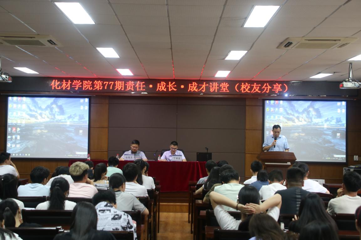 首先,化材公司党委副书记潘从义老师对两位学长做了一个简单的介绍。两位员工都担任过公司“化材之光”员工会会长,同时也是“化材之光”的主要力量。丁卓友员工是99级化工班的学长,现在是温州市金诺企业管理顾问有限公司董事长,在校期间曾担任员工会实践部长。张里艺员工是公司第一届材料专业——02级材料班学长,现在是浙江环诺环保科技股份有限公司董事长,在校期间曾担任员工会主席。