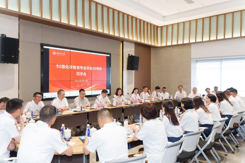 92化学专科班的员工身着统一的服装,来到员工之家,欢声笑语分享着自己的生活近况,并且在大厅签名留念。简单叙旧过后,员工们落座,开展员工座谈会。座谈会由92级员工刘吟老师主持。
