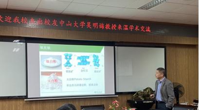 吴明娒教授作了题为“氧化钛以及钛酸盐材料的设计制备和应用研究”的主题报告。吴教授从氧化钛及钛酸盐材料的特点、应用和产研结合三方面来进行学术报告。会中对中山大学硕士、博士招生进行解读,使得本院员工对中山大学、继续深造有了更深层次的了解。