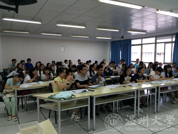 6月16日下午1:30,外面正下着淅淅沥沥的小雨,而化本班的同学和一些研究生们正兴致勃勃,迫不及待地在温大南校区9B-405期待着即将开始的有关中学化学实验创新与探究的主题讲座。本次讲座邀请到了公司员工、瓯海区第一高级中学伍强老师分享他的创新研究方法和成果。