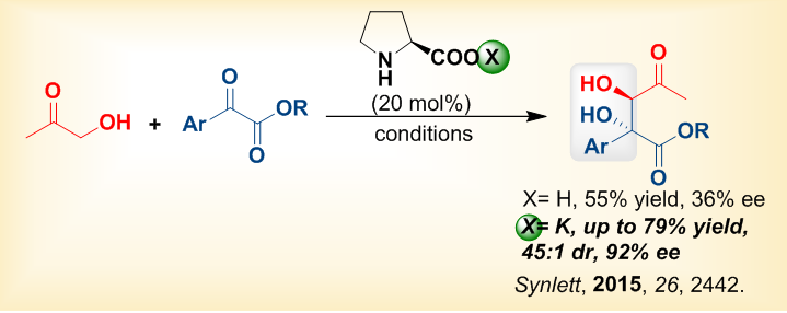 8.Amino Acid Salt Catalyzed Asymmetric Synthesis of 1,2-Diols with A Quaternary Carbon CenterQuanquan WuShulei Liu, Fangyuan Wang, Qingqing LI,  Kangli Chen, Juan Li, Jun JiangSynlett,2015,262442-2446