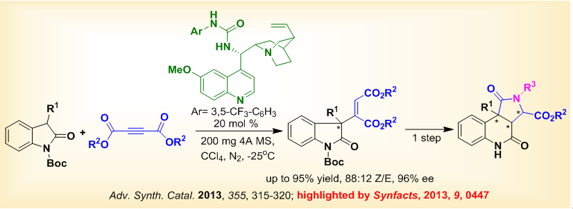 3.Amino Acid Salt Catalyzed Asymmetric Addition Reaction of Acetylacetone to Maleimides and 2-(2-Oxoindolin-3-ylidene)malo-nonitriles,Haiyan Wu, Hongxin Liu, Juan Li, Xinhua Li,* Hong-Ping Xiao, Jun Jiang*,synlett2019,30,1241-1245